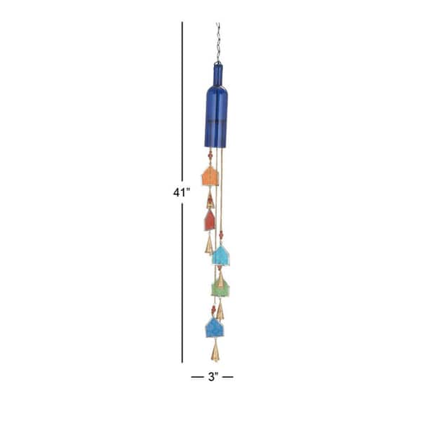 41 in. Blue Glass Bottle Windchime with Beads and Cone Bells