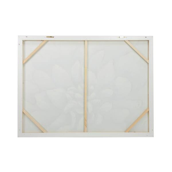 47.5 in. x 35.5 in. Large Rectangular Silver and White Peony Flower Acrylic Painting in Silver Frame
