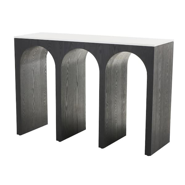 47 in. Black Extra Large Rectangle Wood Art Deco Arched Cutout Console Table with White Marble Tabletop