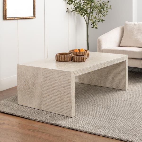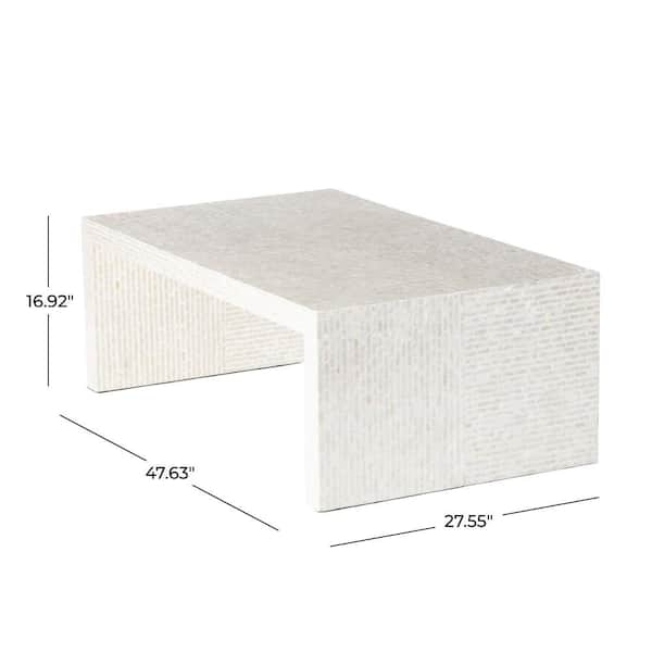 48 in. Cream Rectangle Capiz Shell Mosaic Inlay Coffee Table