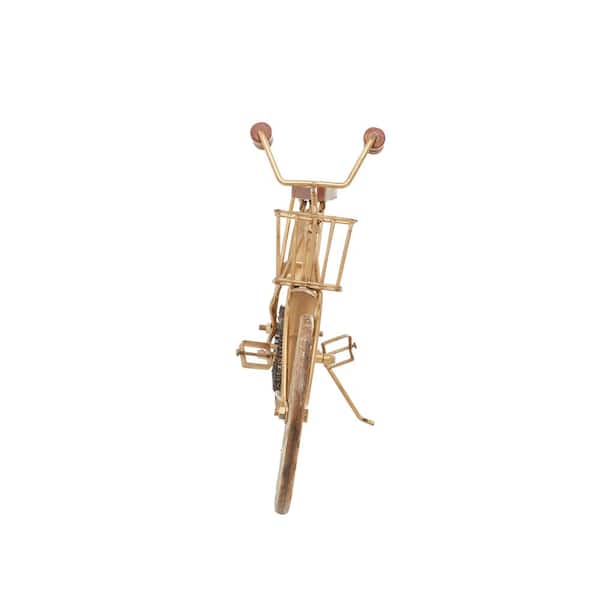 5 in. x 12 in. Gold Metal Bike Sculpture with Carved Wood Wheels