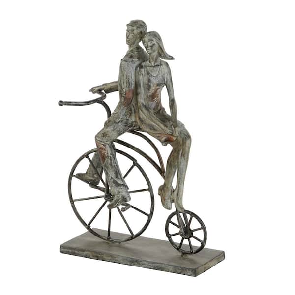 5 in. x 13 in. Gray Polystone People Sculpture with Bike
