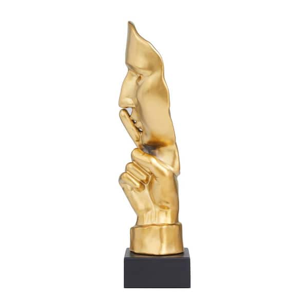 5 in. x 17 in. Gold Polystone Quiet Gesture Mask Sculpture