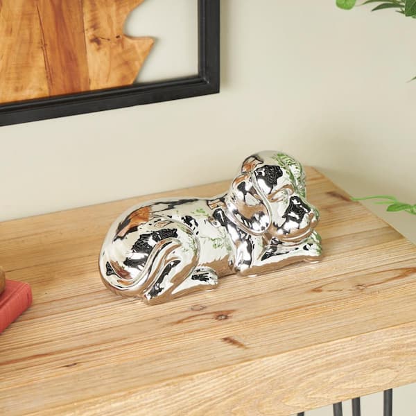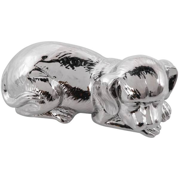 5 in. x 5 in. Silver Ceramic Laying Dog Sculpture with Matte Finish