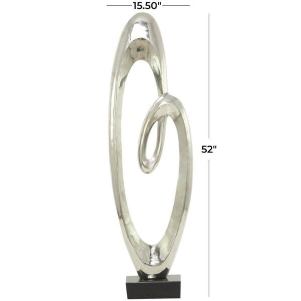 5 in. x 52 in. Silver Aluminum Swirl Abstract Sculpture with Black Base