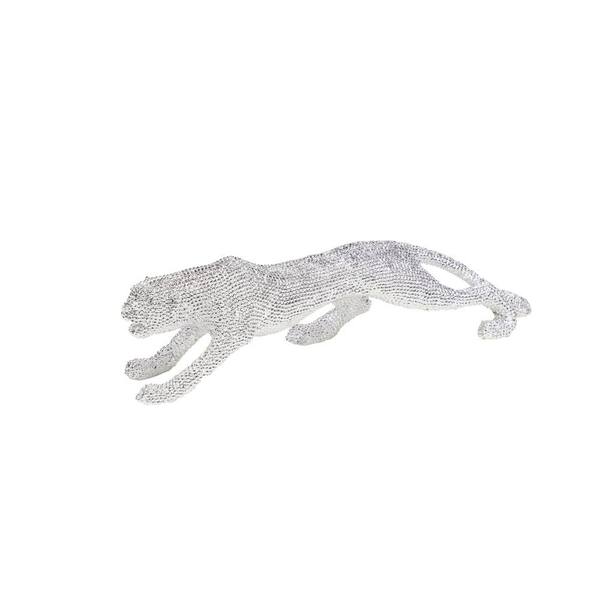5 in. x 6 in. Silver Polystone Bejeweled Leopard Sculpture