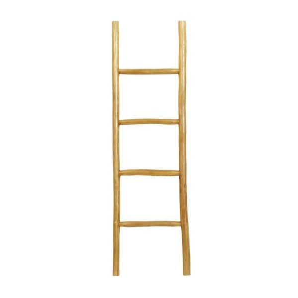 59 in. Brown Handmade Teak Wood 4 Rack Ladder
