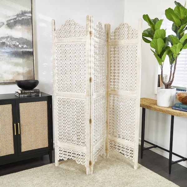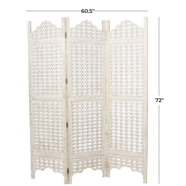 • Cream room divider screen features 3 panel screens