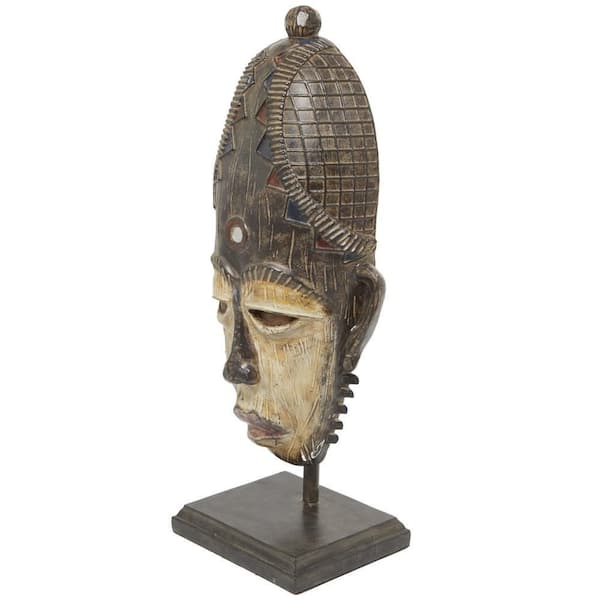 6 in. x 21 in. Brown Polystone Primitive African Mask Sculpture