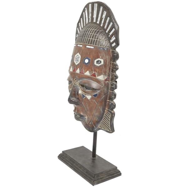 6 in. x 27 in. Brown Polystone Primitive African Mask Sculpture