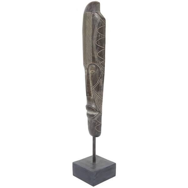 6 in. x 30 in. Brown Polystone Primitive African Mask Sculpture