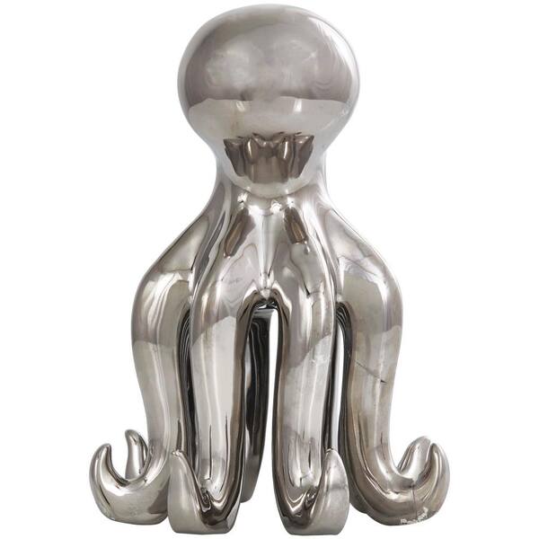 6 in. x 8 in. Silver Ceramic Standing Octopus Sculpture