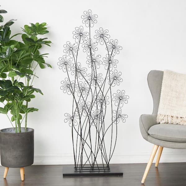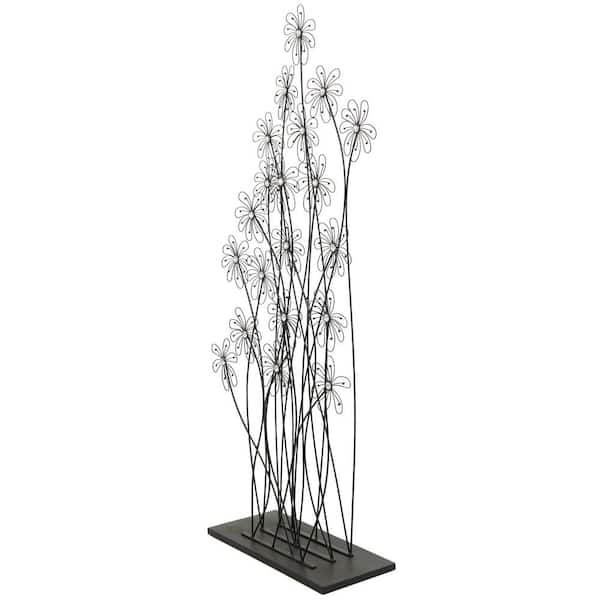 60 in. Black Metal Tall Floral Sculpture with Crystal Embellishments