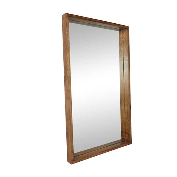 60 in. H x 36 in. W. Minimalistic Rectangle Framed Brown Wall Mirror with Natural Wood Grain and Deep-Set Frame