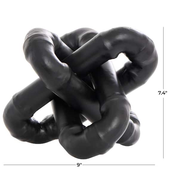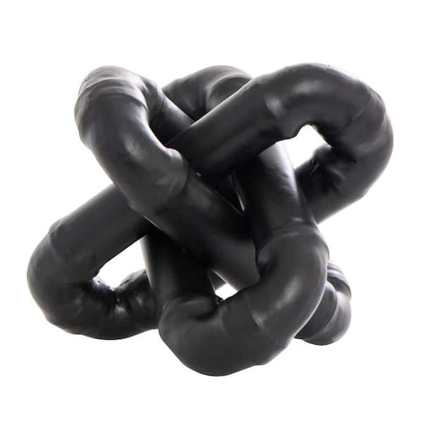 7 in. Black Metal Chain Link Jack Geometric Sculpture with Dimensional Ridges