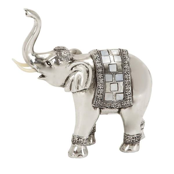 8 in. Elephant Decorative Figurine in Textured Silver, Black and Ivory