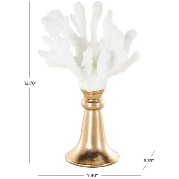 8 in. x 13 in. White Resin Textured Coral Sculpture with Round Copper Base
