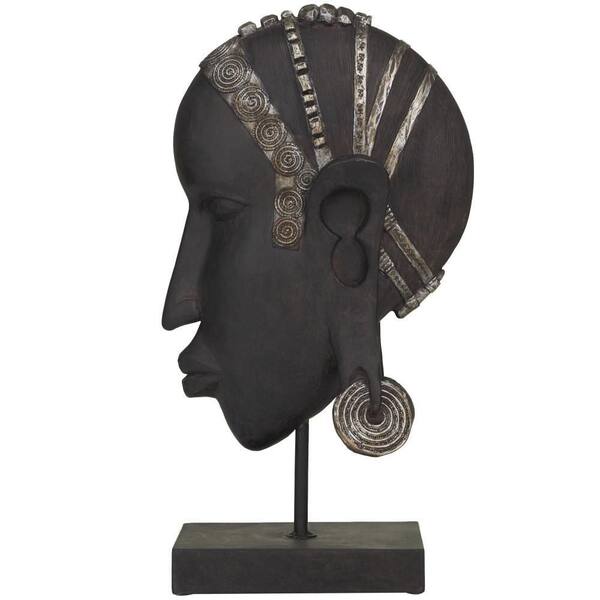 8 in. x 16 in. Black Polystone African Woman Sculpture
