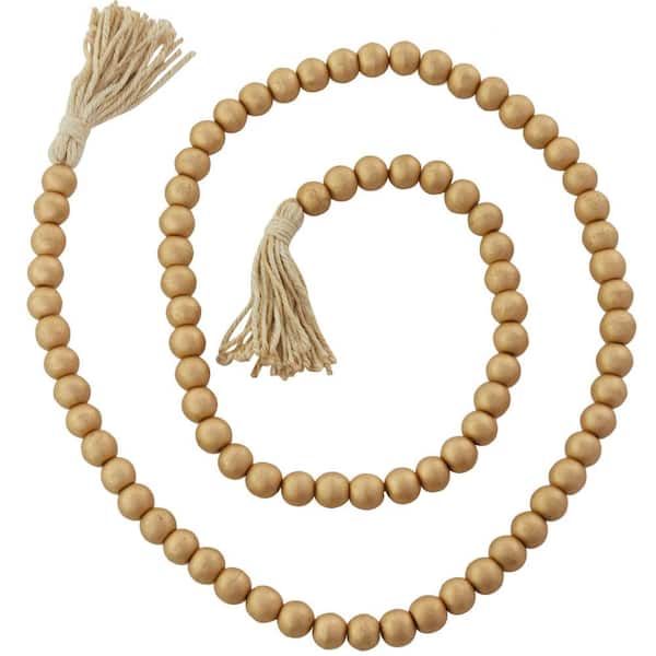 80 in. Gold Handmade Mango Wood Round Metallic Long Carved Beaded Garland with Tassel