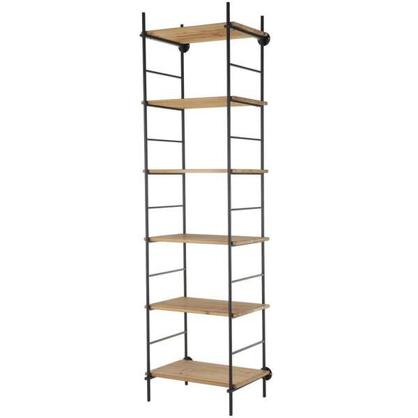 87 in. Tall Brown Wood Rectangular Bookcase with Black Metal Ladder Frames