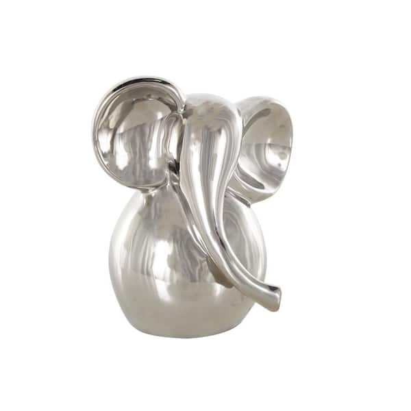 9 in. x 10 in. Silver Ceramic Glossy Elephant Sculpture