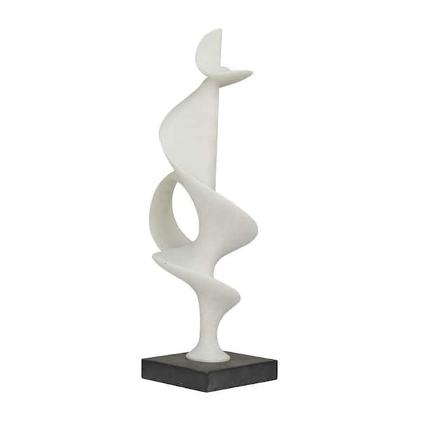 9 in. x 28 in. White Polystone Abstract Sculpture with Black Base