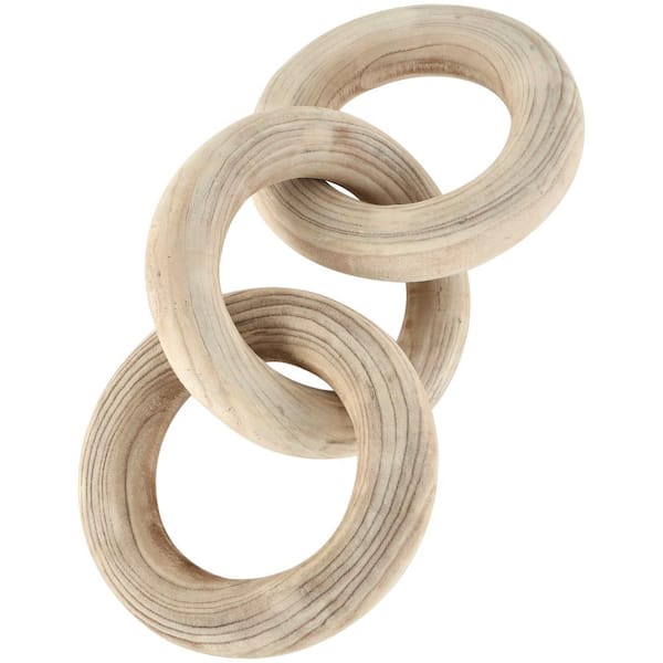 9 in. x 5 in. Cream Wood 3-Link Chain Sculpture with Natural Wood Grain