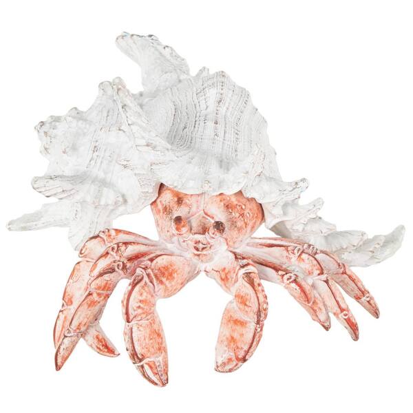 9 in. x 6 in. Red Polystone Textured Crab Sculpture with White Shell
