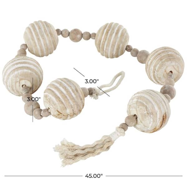 Beige Handmade Wood Ribbed Geometric Garland with Tassel with White Rope