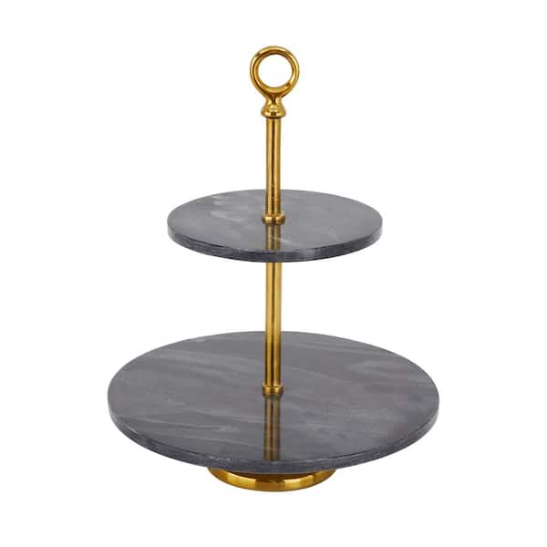 Black 2 Tiered Decorative Cake Stand with Gold Post
