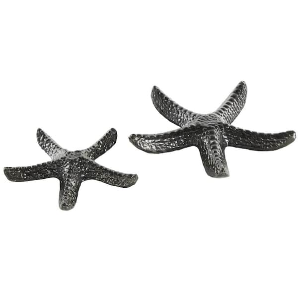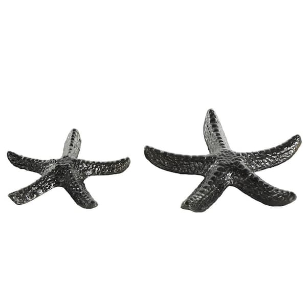 Black Aluminum Metal Bubble Textured Starfish Sculpture (Set of 2)