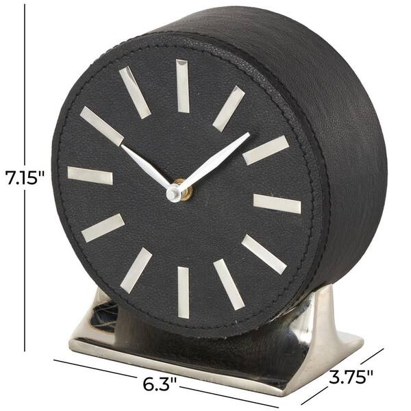 Black Faux Leather Round Clock with Silver Rectangular Base