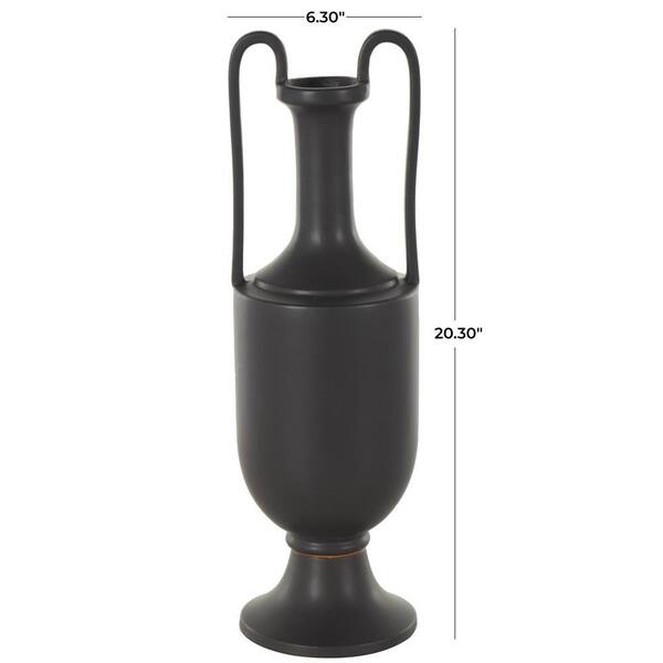 Black Fluted Urn Shaped Ceramic Decorative Vase with Arch Handles
