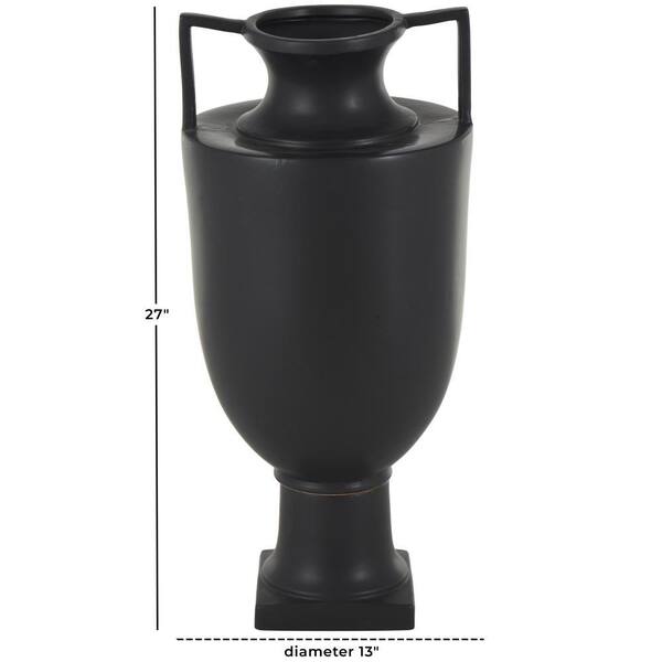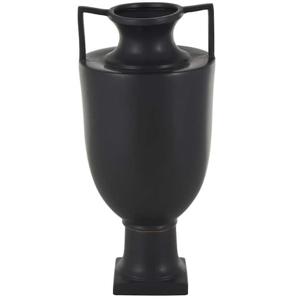 Black Fluted Urn Shaped Ceramic Decorative Vase with Handles
