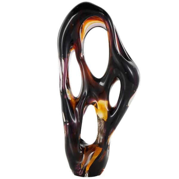 Black Glass Ombre Cutout Abstract Sculpture with Amber Accents