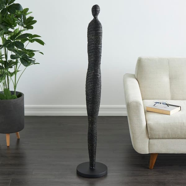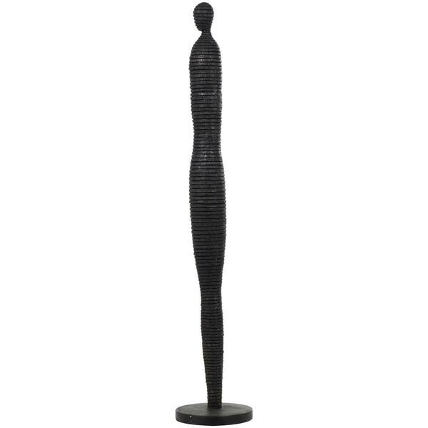 Black Holystone Tall Slim Figure People Sculpture with Ribbed Body and Glitter Accents