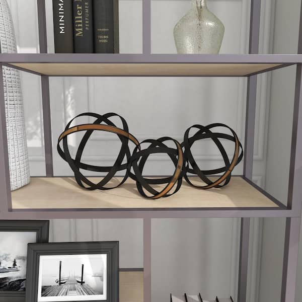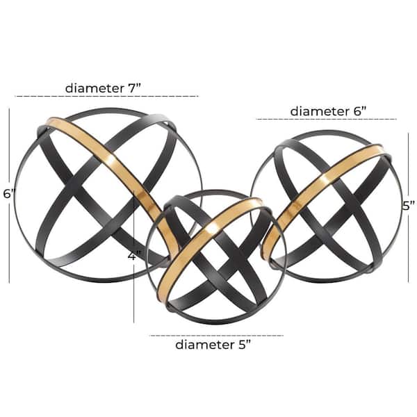Black Metal Geometric Sculpture with Gold Accents (Set of 3)
