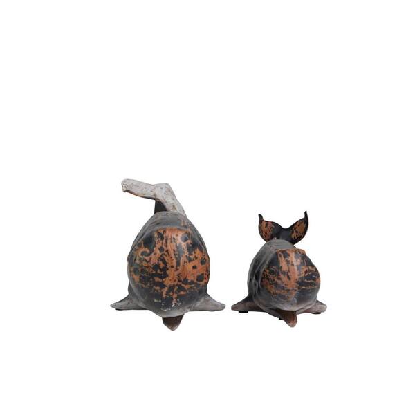 Black Polystone Distressed Whale Sculpture with Brown Wood Inspired Accents (Set of 2)