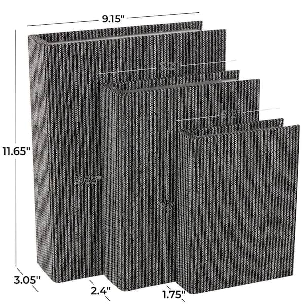 Black Rectangle Fabric 9 in. Faux Book Storage Box with White Sewn Pattern (Set of 3)