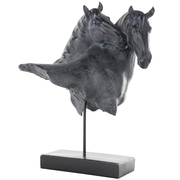 Black Resin Bust Inspired Horse Sculpture with Black Stand