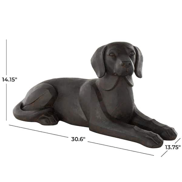 Black Resin Sitting Dog Sculpture with Copper Shadings