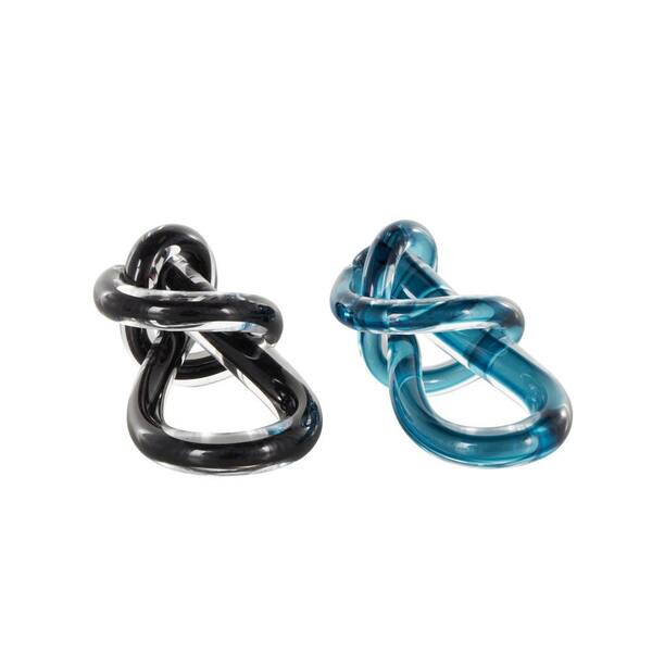 Blue Glass Abstract Twisted Loop Knot Sculpture with Matching Black Pair (Set of 2)