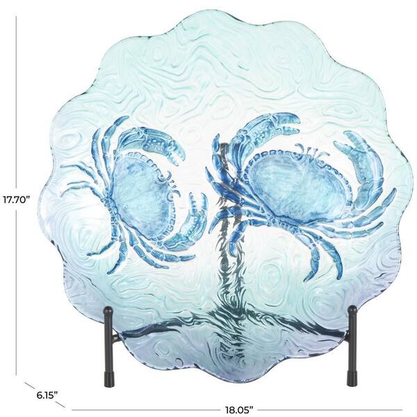 Blue Glass Ombre Decorative Plate Crab Charger with Wavy Edge and Swirl Patterns