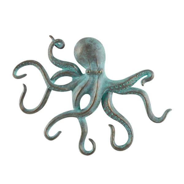 Blue Polystone Distressed Patina Octopus Sculpture with Gold Foil Accents