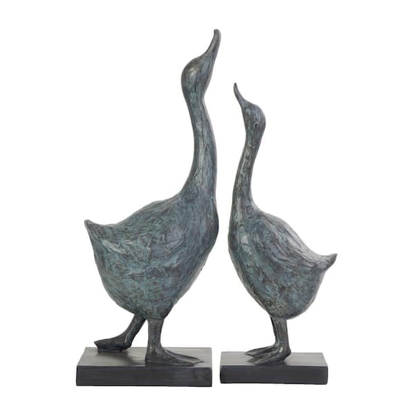 Blue Resin Bird Sculpture with Abstract Texturing Set of 2