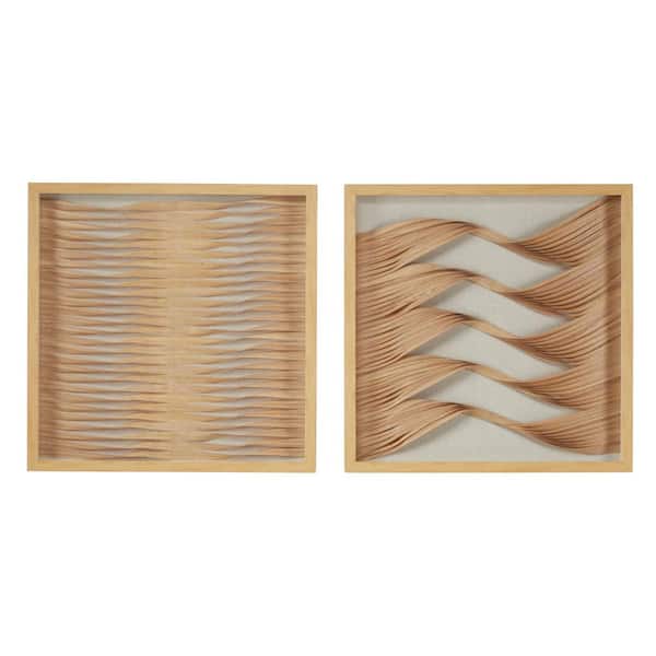 Brown Handmade Geometric Shadow Box with Rattan Weaving (Set of 2)