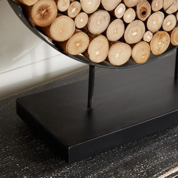 Brown Teak Wood Handmade Abstract Sculpture with Black Stand