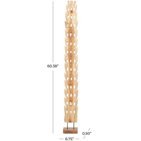 Brown Teak Wood Handmade Tall Floor Cutout Post Abstract Sculpture with Live Edge Base