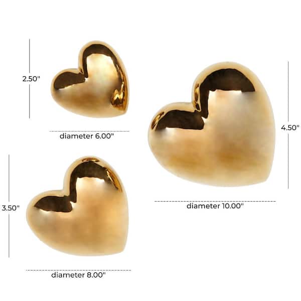 Ceramic Gold Slanted Heart Wall Decor with Varying Sizes (Set of 3)
