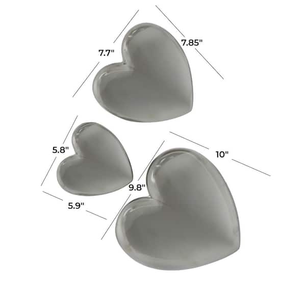 Ceramic Silver Slanted Heart Wall Decor with Varying Sizes (Set of 3)